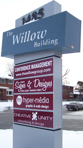 building signage, such as channel lettering, backlit and pylon. All