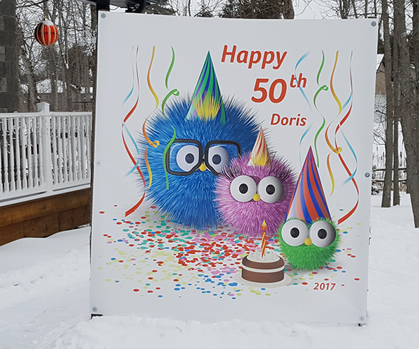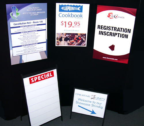 or life-size posters of VIPs. An a-frame, which is a double-sided